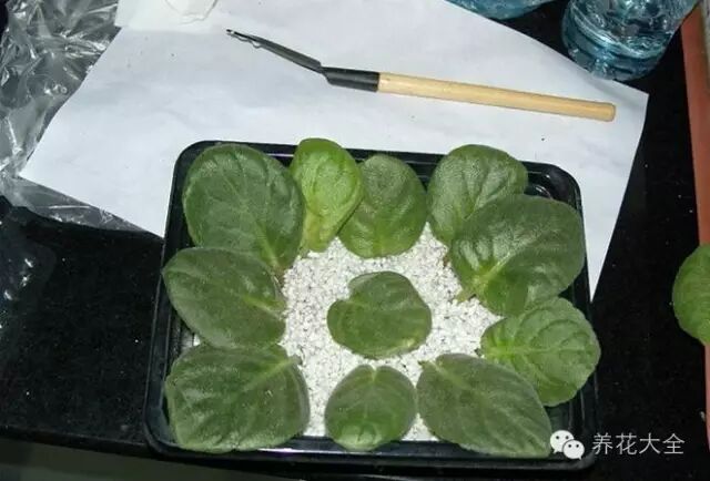 1、选取健康的非洲堇叶片,用锋利的小刀切下来。2、找一个装满水的瓶子,把叶片放在瓶口,叶柄插入水中。3、把瓶子放在有明亮散射光的地方,每4天换一次水,大约2周即可生根。4、生根后,把水位降到叶柄的下面,只让根系停留在水中即可。过段时间后,叶柄上会长出小芽。