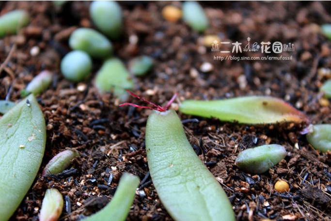 1、选取干净健康的多肉叶片,叶片上不能有损伤,要自然的微微凹下去。(作者:二木花花男 来源:新浪博客)