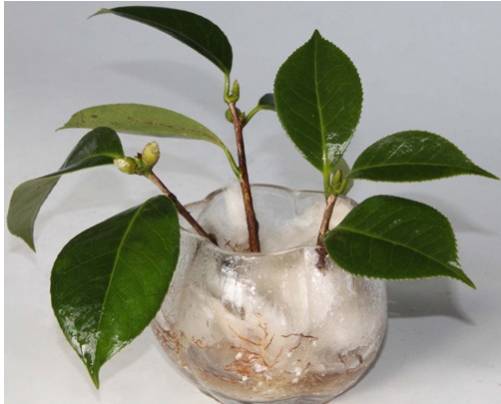 1、选取健康的茶花枝条,剪下。(作者:想象创非凡 来源:茶花吧)2、把靠近根部的叶片清理掉。(作者:想象创非凡 来源:茶花吧)3、在伤口处涂抹多菌灵,放在散光通风处晾干。4、把枝条插在装水的容器中,容器里最好放些海绵、纸巾等保水性好的东西。5、大约2周后,茶花枝条就会生根。