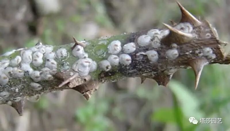 月季上常见的是盾介,一层层贴在茎秆上简直不要太恶心。