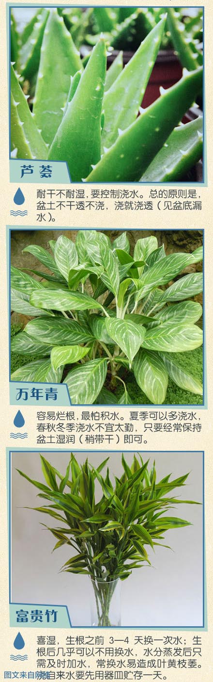 平安树、茶花、绿萝喜水,而发财树、金钱树、虎皮兰则不喜水……很多人都喜欢养花,但花买来之后,往往不会照顾,水不是浇多了淹死了,就是浇少了旱死了……超级实用的常见家养植物的正确浇水方法↓↓给爱养花的TA!