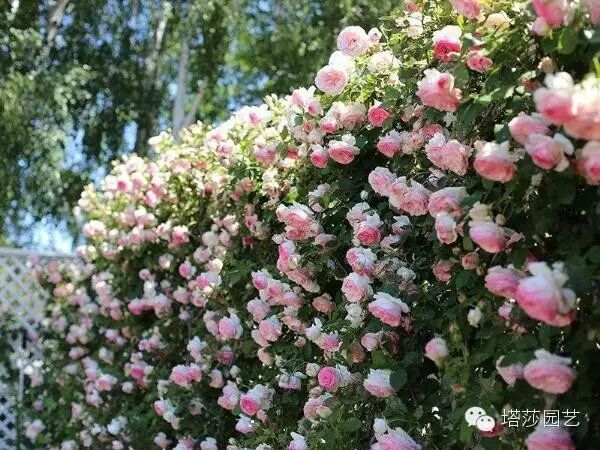 分为一般篱笆型的和高围墙,篱笆一样的高度同拱门。高围墙就选择藤本好了,围墙长的话可以几个颜色搭配起来,多季和一季搭配。
