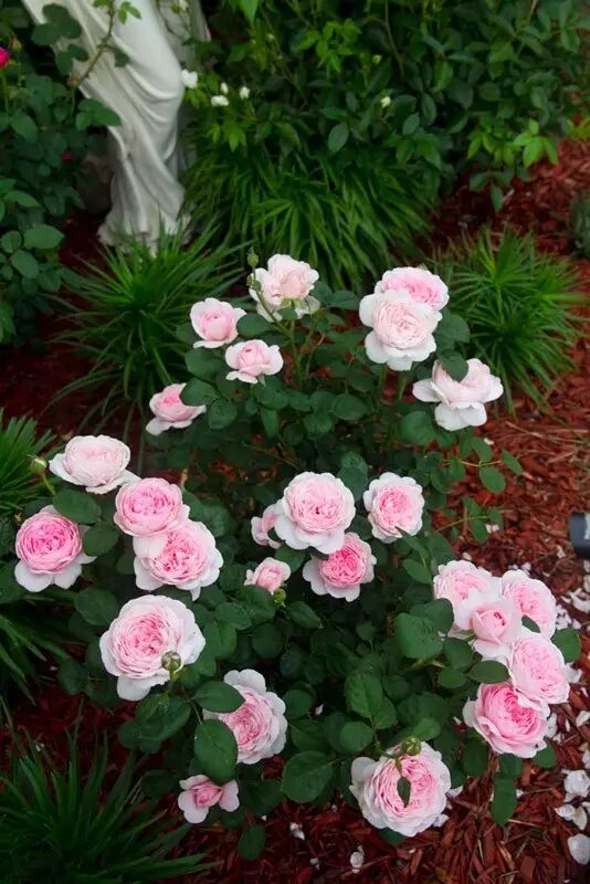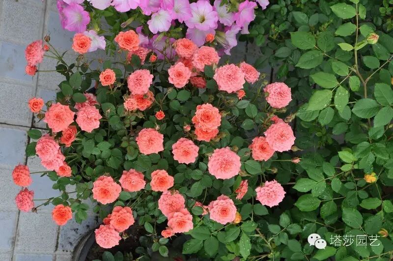 选择一些生长茂盛、横向伸张的品种,奥斯汀的小灌木类的,丰花月季,微月都可以。
