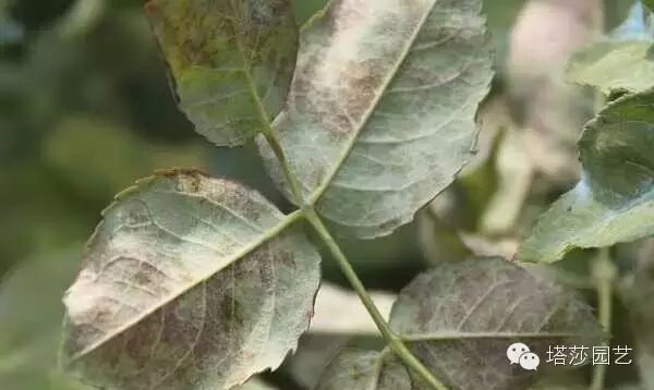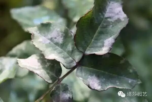 叶片上会有白色粉末,然后叶子会卷曲,这个春天和秋天都很会发,一般靠平时预防,一旦有了也很麻烦的,主要在嫩叶上,有了还是直接剪了最方便。不过这个有几个药还是很灵的。喷了三天后白粉就挂了,