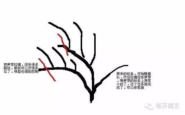 就按这个思路来,肯定可以养成很丰满的一个球了,很多人老是说这个容易装树,那个容易装树,其实他装树就是你惯的,一开始就这么修剪就不会出现树 了。就这么几个枝条还绑的直直的,如何促发笋芽哦,他就知道一个劲的往上长了。